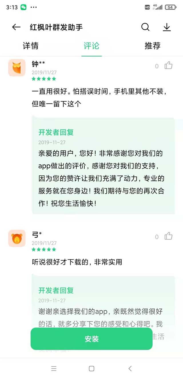 這款軟件大大地減少了我的工作量。不用上傳通訊錄,就能一鍵給陌生號(hào)碼群發(fā)短信,還能對(duì)用戶進(jìn)行分組,用起來真的炒雞方便!有106碼號(hào)證SP證,還是國家高新技術(shù)企業(yè),資質(zhì)方面你也可以放心。
