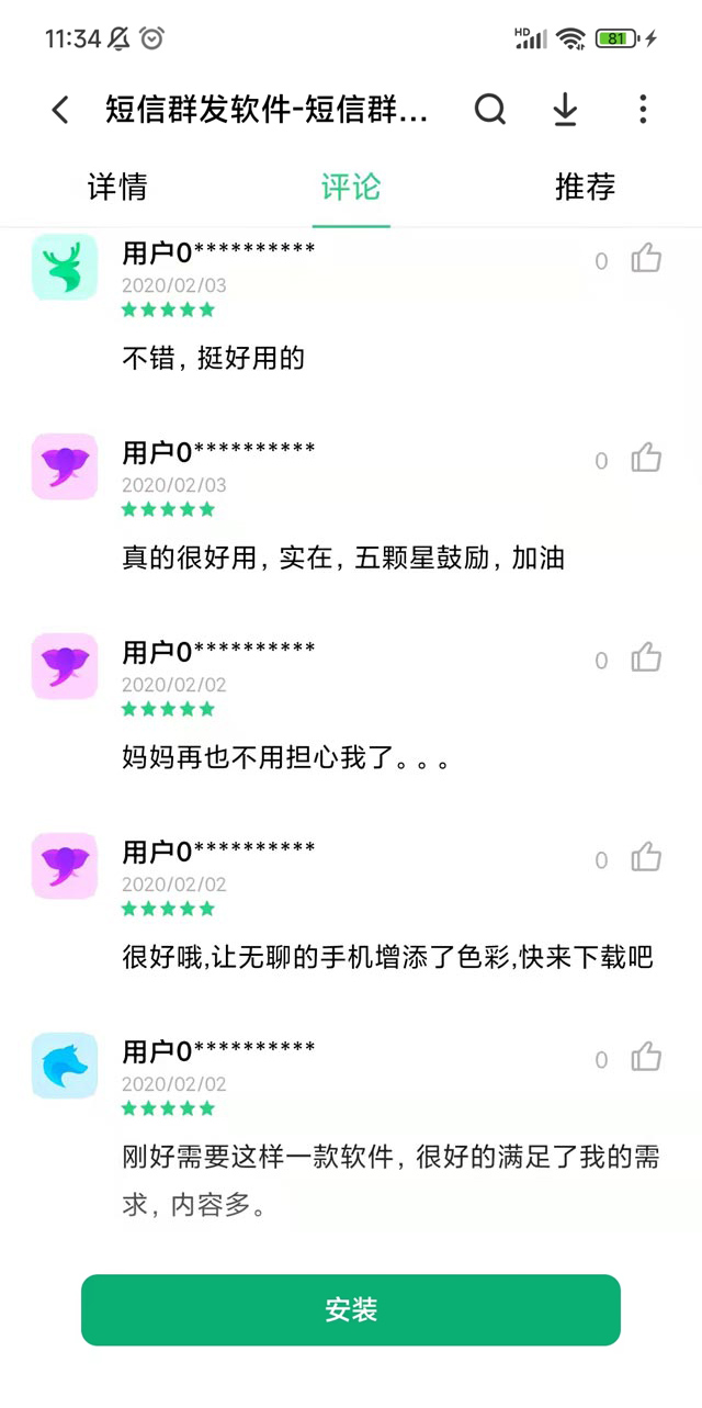 6、穩(wěn)定可靠:軟件在安卓和蘋果應(yīng)用商店都有下載。紅楓葉傳媒資質(zhì)齊全,擁有上百條106短信通道,專營(yíng)短信群發(fā)平臺(tái)十年了。